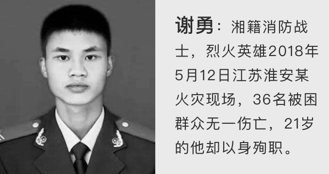 危机时刻,谢勇把自己的空气呼吸器让给战友。战友活了,谢勇却永远地走了,年仅21岁。